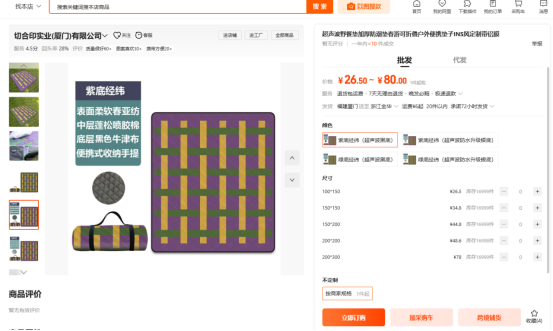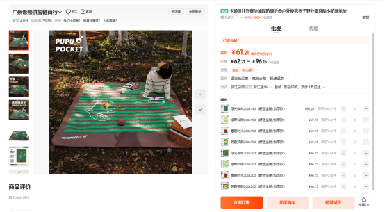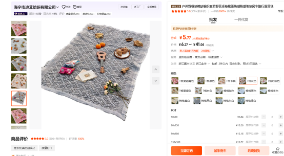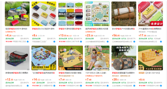 アリババで「野餐垫」というキーワードで調べると、たくさん出てきます。