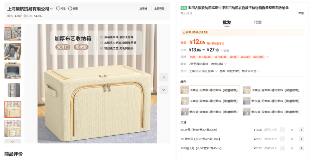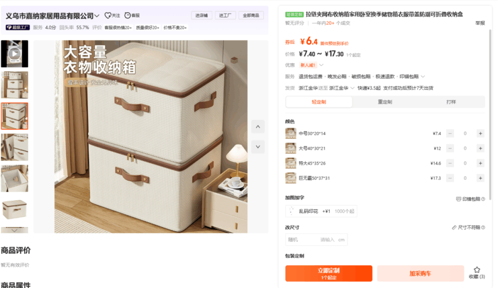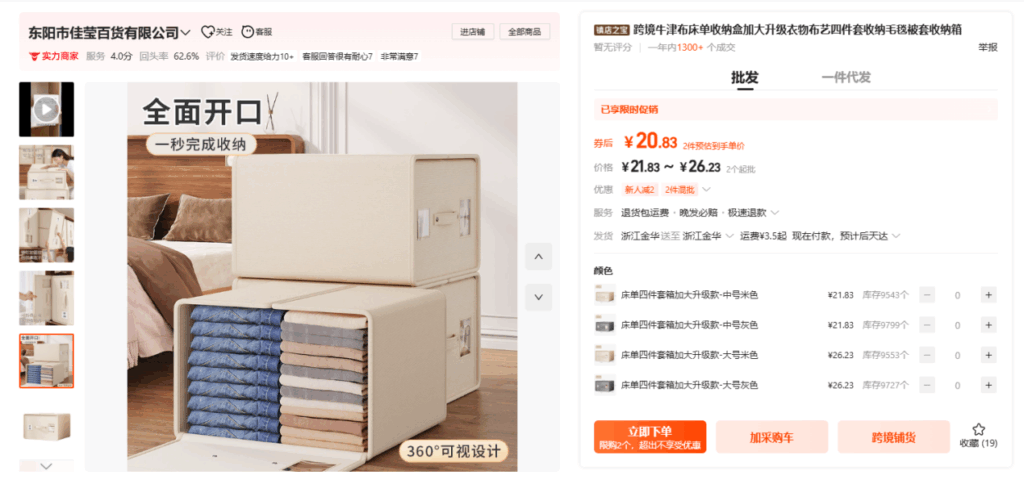 アリババで検索する際のおすすめキーワードは「收纳箱」です。