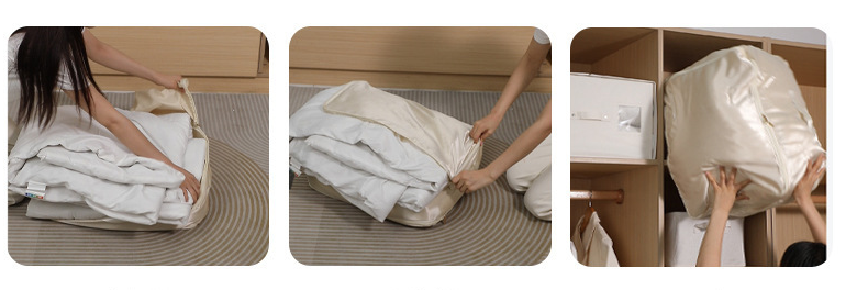 従来の収納袋は、扱いにくく一人では収納しづらいものが多くありました。