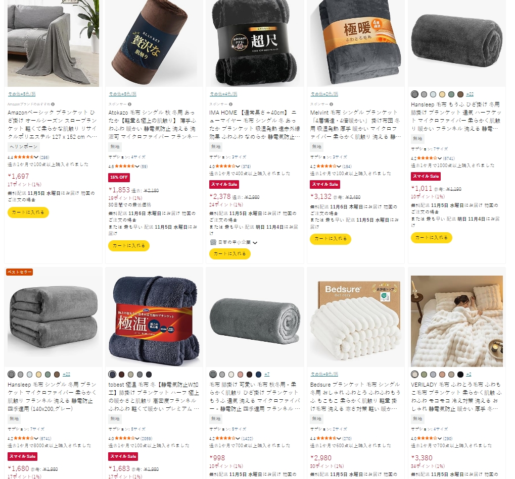 また、ブランケット1枚+枕カバー2枚のセット販売も人気です。