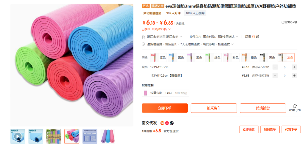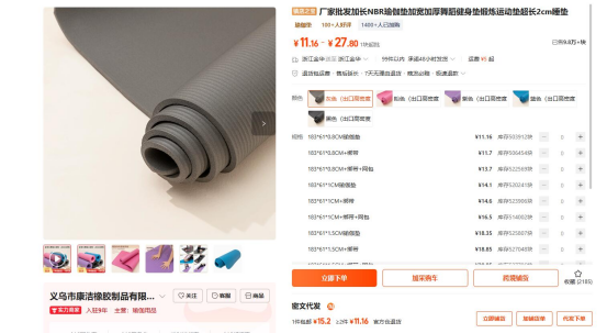 それでは、検索キーワード「瑜伽垫」で1688で商品を探してみましょう!
