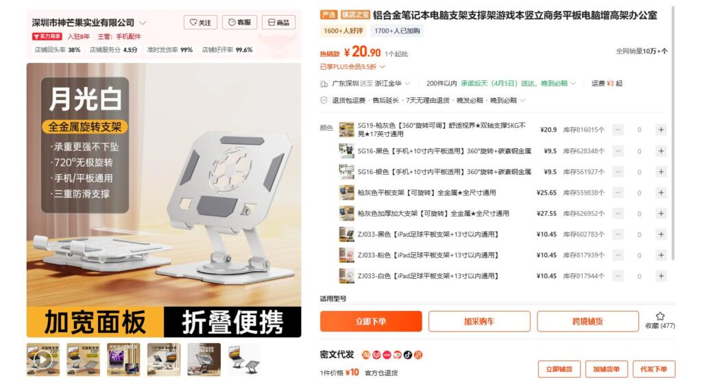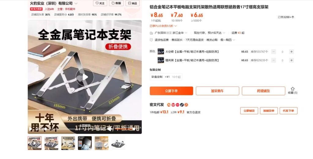今回はAmazonランキング1位のPCスタンドをアリババでリサーチしてご紹介いたします。