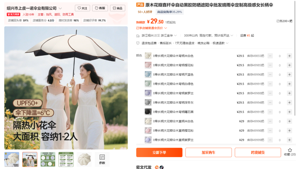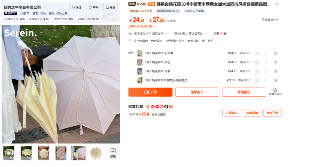 今回は楽天ランキング1位の傘をアリババでリサーチしてご紹介いたします。