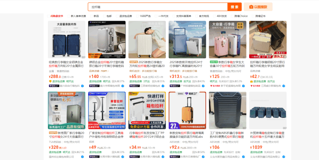 秋は旅行に最適な季節であり、旅行商品の需要も高まっています。 今回おすすめするのは キャリーバッグ です。 中国ECサイト「1688」で「拉杆箱(キャリーバッグ)」と検索すると、多くの商品が見つかります。 下記の3つ店舗を紹介いたします。 ... -
